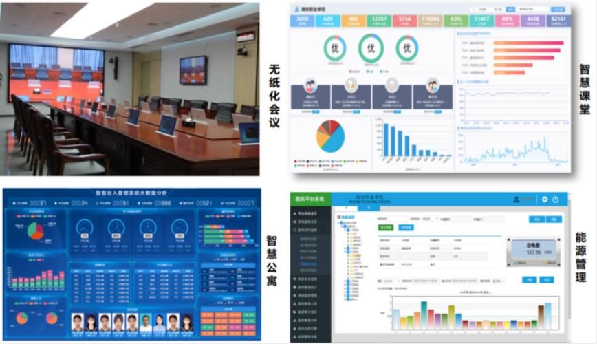 在数字化智慧校园建设中,发展“端-网-云-场景-数据”全栈技术路径,构建“机制-技术-场景-数据”四维一体的数字循环生态,打造绿色集约高质量发展模式,建立全链条数字化赋能体系,打造了管理绿色化、服务低碳化、决策智能化的高质量发展格局。