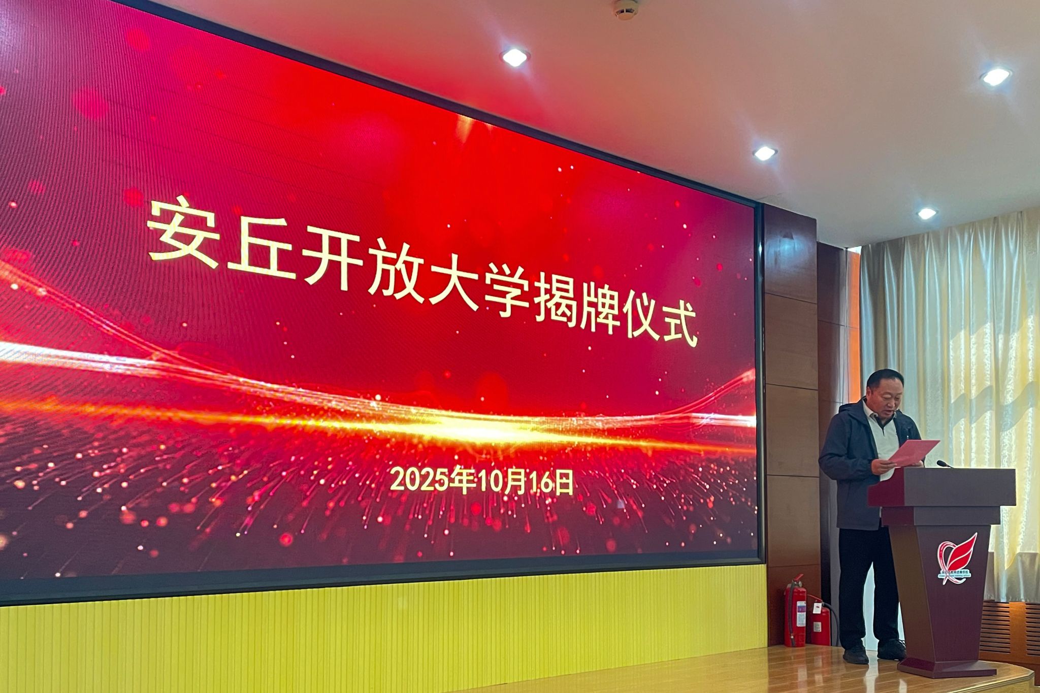 10月16日,安丘开放大学揭牌仪式在安丘市教师进修学校举行。学院党委委员、副院长、潍坊开放大学校长付一明出席仪式并致辞,安丘市相关领导、我院继续教育学院负责同志及各界嘉宾等80余人参加了活动。