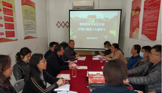4月13日下午,继续教育学院党支部组织全体党员同志在7号楼201党员活动室学习收看了“灯塔大课堂”第十九课。