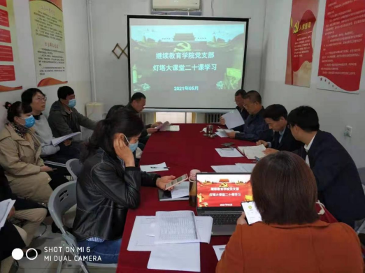 5月10日下午,继续教育学院党支部组织全体党员同志(14名党员)在7号楼201党员活动室学习收看了“灯塔大课堂”第二十课。