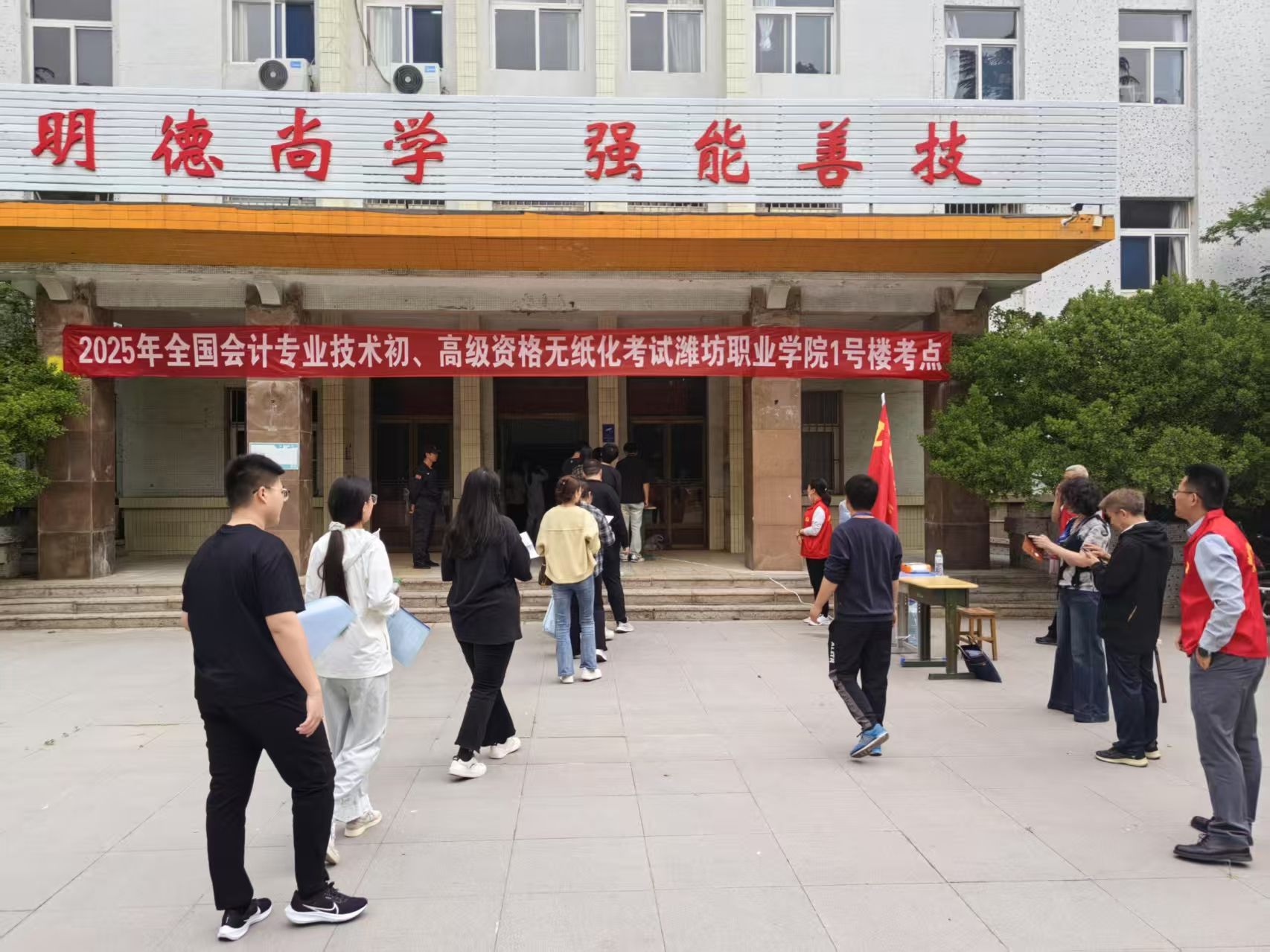 本次考试由继续教育学院负责组织实施,成立考试工作小组,就考试机房设置、安全保障、医疗服务等进行协调安排。考前,学院组织技术人员对考场网络、硬件环境及考试系统进行了全面测试,制定防断电应急预案,确保考试设备稳定运行。考试期间,组织党员教职工成立“党员先锋岗”,在考点开展志愿服务,为考生提供热水供应、考场指引、应急帮助等贴心服务,赢得了考生的广泛好评。