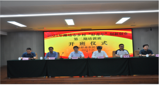 2021年5月25日,由潍坊职业农民学院主办,共青团潍坊市委、潍坊慧三浓职业培训学校协办的潍坊职业农民学院2021年乡村好青年创新创业第二期培训班在潍坊国家农综区顺利开班。潍坊国家农综区推进办副主任张继玉、共青团潍坊市委书记赵中国、寒亭区农业农村局局长韩风浩、共青团寒亭区委书记张磊及潍坊职业学院继续教育学院负责同志出席开班仪式,来自潍坊市寒亭区乡村好青年共计97名学员参加培训。