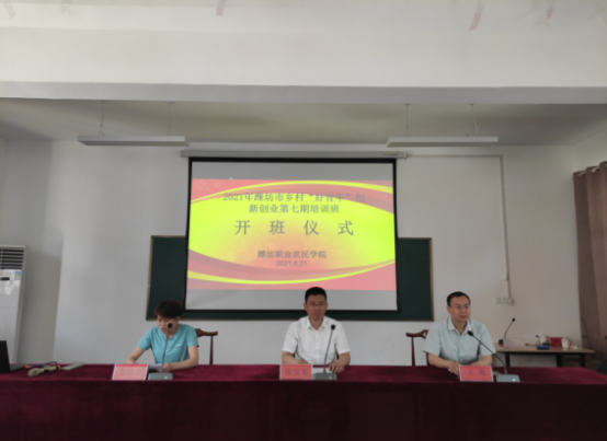 2021年6月21日,由潍坊职业农民学院主办,共青团潍坊市委、潍坊慧三浓职业培训学校协办的潍坊职业农民学院2021年乡村好青年创新创业第七期培训班在潍坊职业学院潍城基地顺利开班。共青团潍坊市委副书记张宝军,潍坊慧三浓职业培训学校负责人出席开班仪式,来自诸城市乡村好青年共计70名学员参加培训。