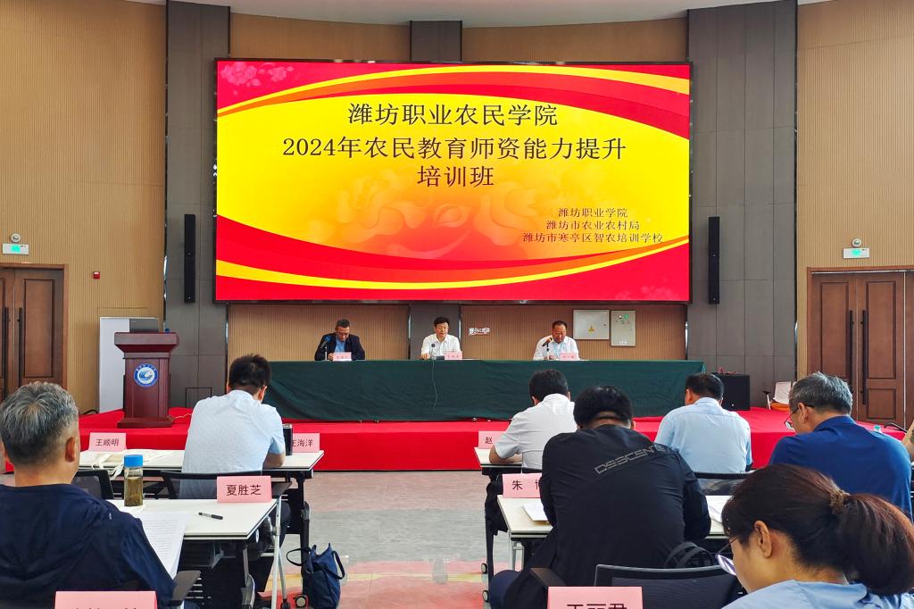 5月20日,潍坊职业农民学院2024年农民教育师资能力提升培训班在潍坊职业学院滨海校区开班。潍坊职业学院党委委员、副院长付一明,市农业农村局党组成员、副局长于鹏展,市农业技术推广中心副主任王焕之出席开班仪式。