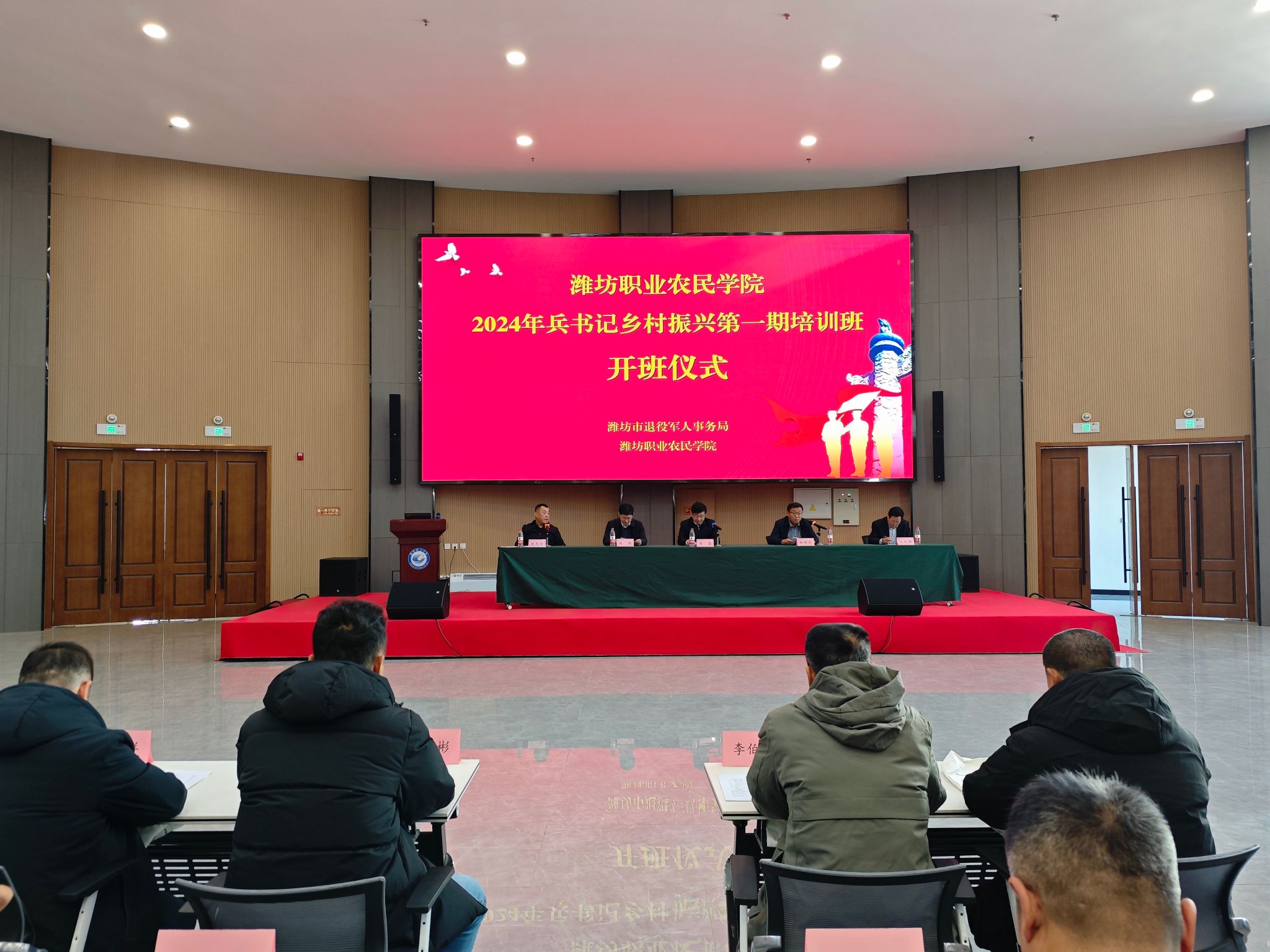 12月16日至12月18日,潍坊职业农民学院2024年兵书记乡村振兴培训班在潍坊职业学院滨海校区举办。潍坊市退役军人事务局党组书记、局长李磊,潍坊职业学院党委副书记韩瑞东,潍坊市委组织部党员教育中心主任刘啸,潍坊市农业农村局二级调研员赵庆胜,潍坊市退役军人事务局党组成员、副局长赵允生出席开班仪式。来自全市125名退役军人“兴村治社好书记”参加培训。
