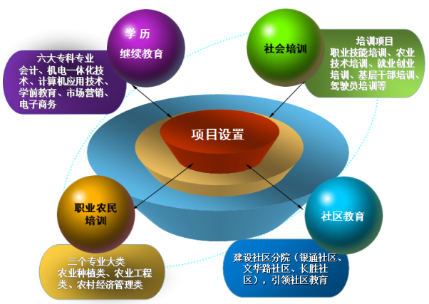 一、学院概况 继续教育学院归口承担管理全院的成人学历继续教育、社会培训、社区教育和职业农民培训工作。 继续教育学院广泛开展成人高考、远程教育、自学考试、电大等成人学历继续教育活动,在校生近2000人,毕业生6000余人。 继续教育学院先后被评为国家级、省级、市级社会培训示范基地,2016年以来先后举办各类培训30余期,涉及农业、金融、交通、艺术等9个领域,累计服务近62000人次。 拥有潍坊市第一所职业农民学院,理事会领导、院务会负责制下的公益性教育培训机构,教育内容涵盖五大教育类别,为潍坊市乡村振兴战略提供强有力的人才智力支撑。 二、培养目标 依托潍坊职业学院的专业特色和办学优势, 充分利用学院教学教育资源和社会资源,围绕乡村振兴、社区教育、社会培训和成人继续教育培训等项目内容,不断提升社会服务水平,旨在培养更多更好的社会适用人才,从而为服务区域经济建设和社会发展提供智力支撑。 三、培训设置 继续教育学院包含学历继续教育和非学历继续教育,学历继续教育主要涉及六个专科专业;非学历继续教育主要涉及社区教育培训、职业农民培训以及各种社会培训项目。